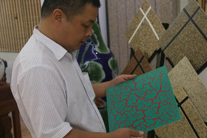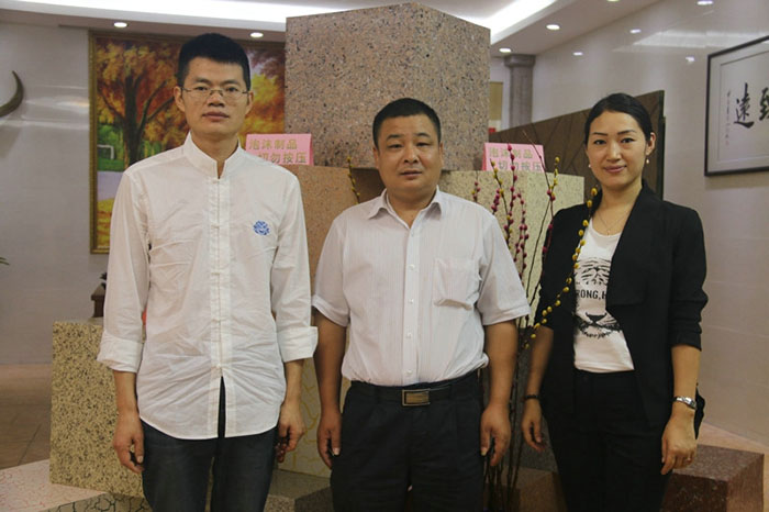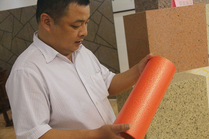 馮總此行參觀了鑫浪綜合大樓,并現(xiàn)場觀看了鑫浪學(xué)員的700水包水多彩體系和XL-800水性裂紋劑的施工工藝。馮總對于鑫浪水包水的仿真度和裂紋劑做出的藝術(shù)裂紋效果贊不絕口,并表示:鑫浪水包水體系施工工藝最簡單、成本最低、穩(wěn)定性最好、附加值高。