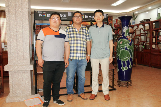 700多彩系統(tǒng)將多彩行業(yè)推到一個新的起點上,鑫浪化工推出的一系列多彩服務措施成為業(yè)內(nèi)標桿。受此影響,山東潤福倫何總及隨工專程驅(qū)車兩千余公里,帶著砂包砂工程樣板從威海來到鑫浪考察與技術交流,鑫浪多彩工程師團隊持續(xù)服務做出的效果得到認可,何總當場刷卡簽單合作還得益于鑫浪的多彩配套服務。同時感謝泉州鄭總委派技術交流的江工再次刷卡下單鑫浪R101交聯(lián)劑、R103定型劑。 新客戶與老客戶多次合作說明鑫浪700體系及其配套服務已然得到客戶高度認可。