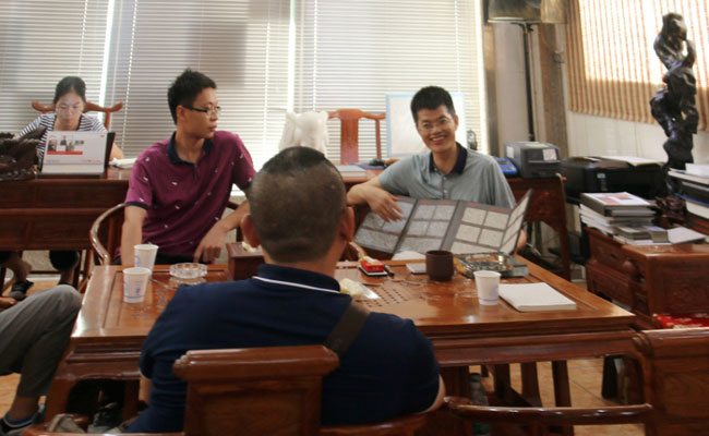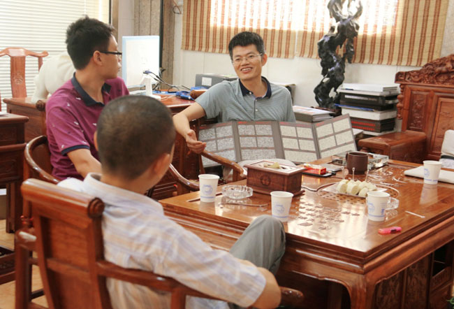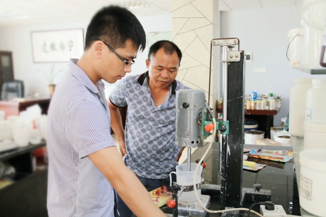 “功以才成,業(yè)由才廣?!比瞬刨Y源是企業(yè)發(fā)展的第一資源。鑫浪廣納多彩專業(yè)人才,耗資兩百余萬(wàn)打造業(yè)內(nèi)最系統(tǒng)、最完善的技術(shù)服務(wù)系統(tǒng),協(xié)助客戶快、準(zhǔn)、狠的切入多彩市場(chǎng),讓更多的中小型涂料廠能咸魚(yú)翻身高速發(fā)展。受到700體系的吸引,廣州華冠裝飾材料譚總、龔工、譚工,嘉樂(lè)士黃工來(lái)鑫浪交流700水包水、水包砂技術(shù)。