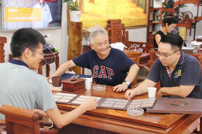 體驗(yàn)性是水包水多彩之魂,而色卡是多彩體驗(yàn)的窗口。色卡同時(shí)又是企業(yè)的一張名片,代表企業(yè)的實(shí)力、品位與文化。多彩可變性特別強(qiáng),甲方客戶不一定從色卡選色,但精致高端的色卡能吸引客戶的眼球以及對(duì)企業(yè)實(shí)力的認(rèn)可。熱烈歡迎華隆麥總、楊工來(lái)鑫浪交流多彩色卡的應(yīng)用,同時(shí)感謝兩位老總對(duì)鑫浪2017版色卡庫(kù)的高度認(rèn)可。