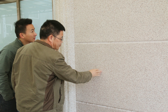 保立佳乳液王總、康工等一行人到訪鑫浪,與陳總交流乳液在多彩真石漆中的應(yīng)用。真石漆噴槍一槍成型的多彩真石漆,效果媲美水包砂,同時(shí)提高生產(chǎn)與施工效率,配方成本性價(jià)比高,被王總譽(yù)為是未來(lái)替代真石漆的無(wú)二選擇。