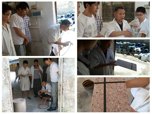 2014年6月18日,山西晉中芳芳涂料產(chǎn)業(yè)有限公司的李總、杜工來到鑫浪培訓基地,與我司技術(shù)員進行技術(shù)交流,主要涉及水包水、水包沙等新型涂料技術(shù)。我司學員培訓導(dǎo)師劉工親自陪同,并現(xiàn)場向客戶演示水包水、水包沙等技術(shù)方面的制作流程。