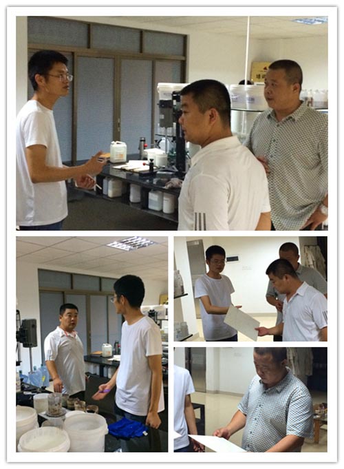 武漢雅美佳涂料有限公司陳總、武漢晶蓮華涂料有限公司葉總、廣東為民漆業(yè)有限公司魏總等一行人來(lái)鑫浪化工探討交流涂料技術(shù)及辦廠經(jīng)驗(yàn)。尤其是鑫浪自主研發(fā)的700水包水多彩體系受到了客戶的高度認(rèn)可,客戶在參觀鑫浪實(shí)驗(yàn)室及樣板之后,對(duì)鑫浪化工培訓(xùn)出的工程師所展示的精湛技術(shù)表示認(rèn)可,并當(dāng)場(chǎng)確立與鑫浪建立長(zhǎng)期的深度合作,包括技術(shù)合作與人才培養(yǎng)輸送等。