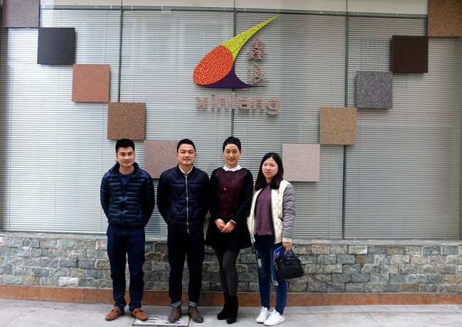 來自深圳漢凱建材公司的黃總攜工程師等一行三人來鑫浪交流“仿石漆”技術,并稱贊700水包水仿石漆的仿石效果非常好,黃總計劃在近日安排工程師與鑫浪工程師進行深度交流多彩技術。如今很多傳統(tǒng)外墻涂料都被水包水多彩所取代,水包水多彩市場是一個革命性的轉變,未來的發(fā)展前景十分廣闊。只要抓住這場機遇,就可能成就品牌創(chuàng)造財富。鑫浪愿以“質量第一、信譽至上”為宗旨,以“美化環(huán)境,造福人民”為己任,與新老朋友真誠合作——2016,我們攜手再登高峰!