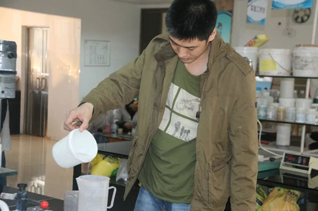 熱烈歡迎新疆烏魯木齊九天麗涂料劉工來鑫浪考察交流水包水多彩技術,短短兩天的鑫浪之旅,讓劉工總充分了解到鑫浪700水包水產品的魅力,并當即購買一套鑫浪手提樣板(含水包水多彩、水包砂、裂紋漆)。