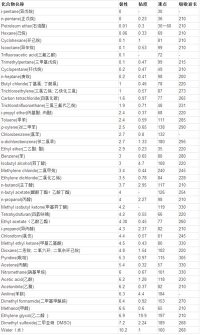 有機溶劑的極性根據(jù)官能團和對稱性可初步判斷,具體的需參照極性參數(shù),如下: