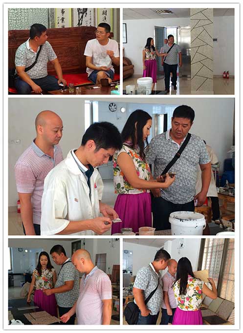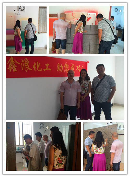 鑫浪水包水多彩具有高仿真性,可一次噴涂而成;巧奪天工、色彩斑斕的涂層和花紋,高度還原天然花崗巖的美觀,甚至勝過天然。在越南辦廠的廣西客戶劉曉華聽聞鑫浪化工的美名,親自前來鑫浪參觀考察并與陳細(xì)艷總經(jīng)理探討多彩技術(shù)。