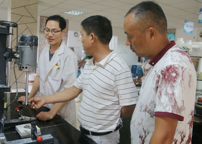 鑫浪化工陳總一直堅持“服務(wù)別人的能力有多大,人生的成就就有多大”的經(jīng)營理念,并為每一位鑫浪客戶積極提供仿石漆一體化產(chǎn)品解決方案和配套服務(wù)。長沙老人頭里涂料謝總、岳陽五湖園林張總來鑫浪交流700水包水多彩體系技術(shù),對鑫浪化工所提供的完善配套服務(wù)尤為滿意,兩家均表示希望與鑫浪化工有進一步的交流與互助。