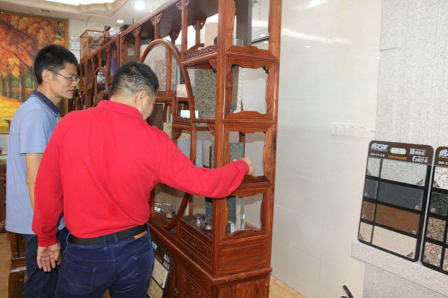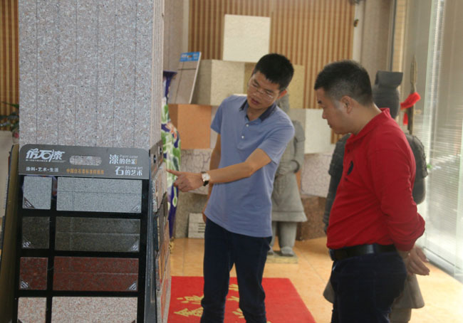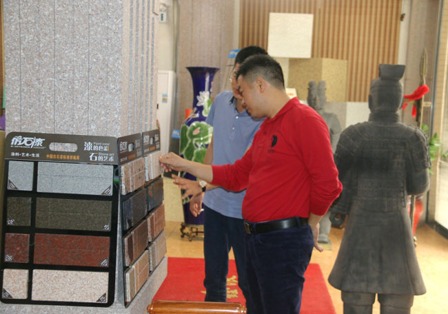 熱烈歡迎金涂寶涂料莫總來鑫浪體驗700水包水。莫總在與陳總的交談中,一語中的指出水包水多彩的未來的趨勢是水包砂,水包砂結合了平面水包水多彩仿石效果與真石漆質感的雙重優(yōu)點!