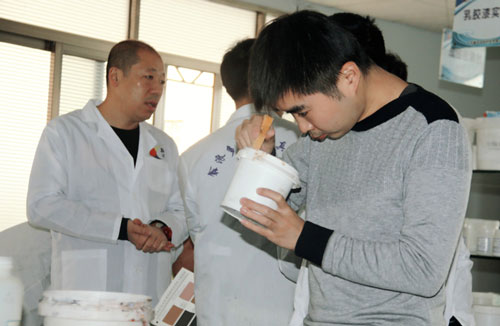 熱烈歡迎哈爾濱比爾工貿(mào)李總等一行人、哈爾濱博元涂料王工來(lái)鑫浪交流700水包水多彩。陳總在與劉總的交談中表示,要最好水包水多彩的仿真度,就需要發(fā)揮工程師的“工匠精神”,即追求卓越、精益求精、更完美的精神理念。只有這樣才能打造本行業(yè)最優(yōu)質(zhì)的產(chǎn)品,其他同行無(wú)法匹敵的卓越產(chǎn)品。李總同時(shí)強(qiáng)調(diào)了企業(yè)責(zé)任感的重要性,“一個(gè)企業(yè)無(wú)責(zé)任感相當(dāng)于是自殺行為,比爾在服務(wù)一個(gè)客戶(hù)的時(shí)候,不僅要把項(xiàng)目做完,更要做好做到極致,把客戶(hù)變成業(yè)務(wù)員才是不斷發(fā)展的動(dòng)力源泉?!崩羁傇邛卫说纳疃冉涣骺疾旌蟊硎荆葼栐概c鑫浪一起,攜手共迎水包水大時(shí)代,共同為改變中國(guó)外墻涂裝之色彩而貢獻(xiàn)一份力量!
